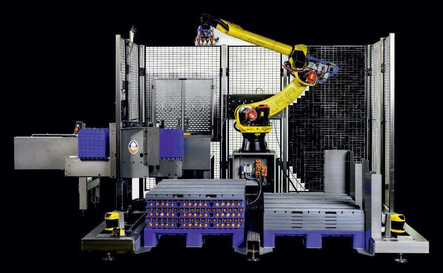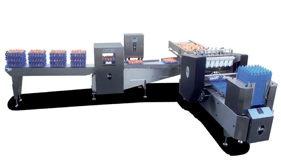 Jonty and Corey Hofer in their new aviary barn. A new Volker egg packer and stacker adds efficiency.