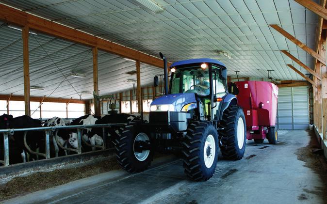 New Holland’s all-purpose TS6 Series tractors deliver big performance at an economical price. The four TS6 models range from 90- to 115-PTO horsepower: two models are equipped with fourcylinder engines and two models feature six-cylinder engines. All four models are available with either 2WD or 4WD, and with a flat-deck ROPS operator station or an all-weather cab.