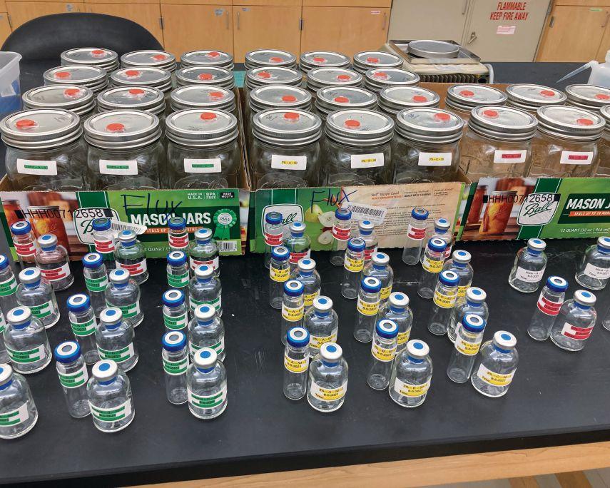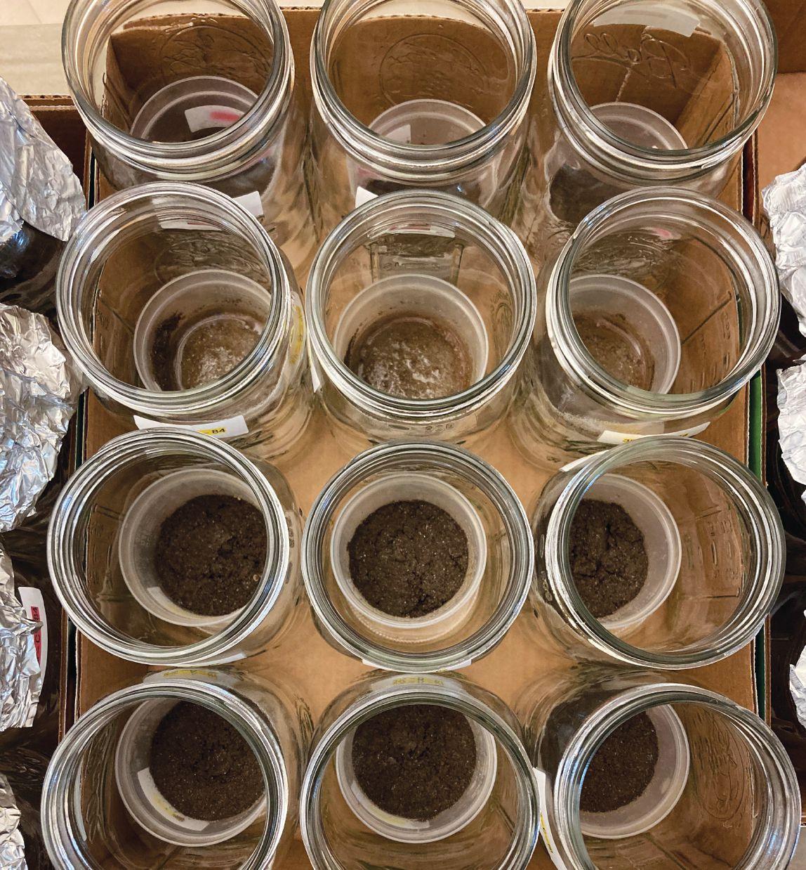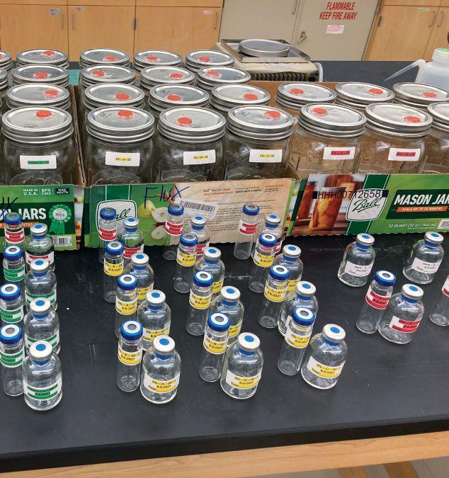 Closed jars to sample gas emissions at the Woodwell Climate Research Center.