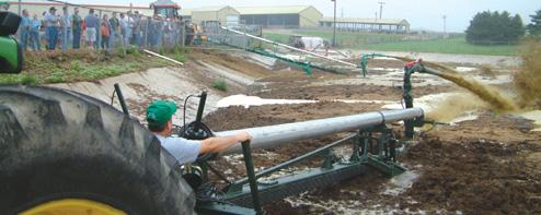 Waste from Meadowlane’s operation is agitated in the pits before it is pumped – using a hand-built 855 Cummins pump – into tankers or through a drag hose out to the field.