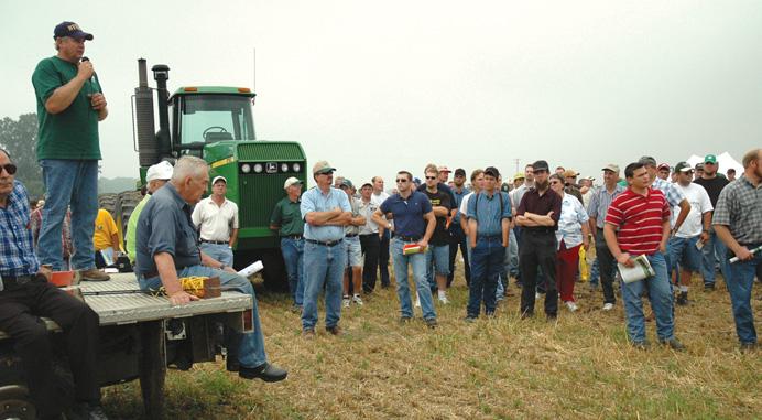evolved from cattle to swine. By 2002, the one-time dairy had fully transformed into a 15,000 hog contract finishing operation with 1700 acres of corn and soybean. Pamela is no longer working on the farm, but their son David, son-in-law Chris Pearson, and Mike’s stepbrothers, Mike and Don Burkhalter, have come on board. Mike says they built three 4000 head contracted finishing barns and converted three 1000 head barns. Each barn has a slat floor/deep pit and the 4000 head buildings can store approximately two million gallons of waste, while the 1000 head buildings hold approximately 500,000 gallons. “That’s enough capacity for once-a-year removal,” he says.