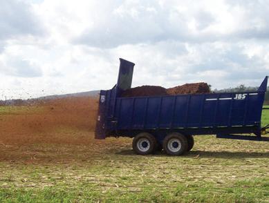 to power two, 38-inch spinners with six blades each with a variable speed range from 350 to over 900 RPM. A beater was installed between the metering gate and the spinners, designed to insure that a more uniform material would be spread. The “tip out” feature of all EzSpreds was incorporated for ease of maintenance. All controls are mounted together in a separate panel for operator ease of use. Several models are available to meet different users needs, including spreaders as short as 14 feet for mounting on new or used TerraGator-style movers up to 35 foot long semi trailer units. www.fsifab.com
