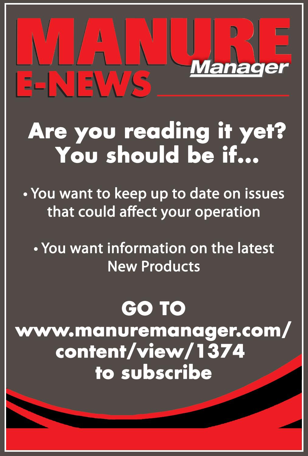 From time to time, we at Manure Manager make our subscription list available to reputable companies and organizations whose products and services we believe maybe of interest to you. If you do not want your name to be made available, contact our circulation department in any of the four ways listed above.
