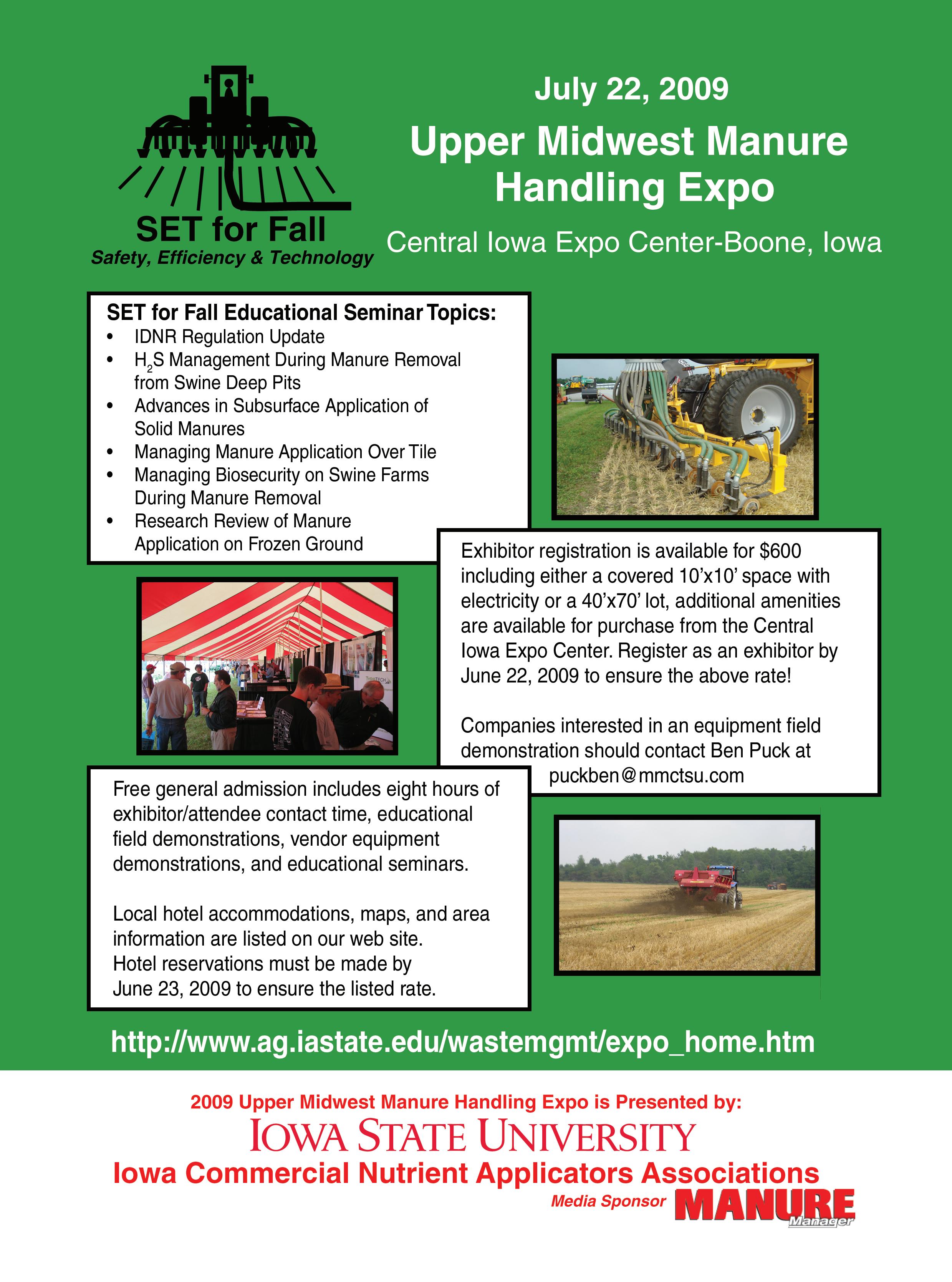 2009 Upper Midwest Manure Handling Expo, Central Iowa Expo Center, Boone, Iowa. Visit www.abe.iastate.edu/ wastemgmt.