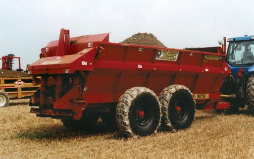 The standard rotary piston pump delivers 4110 liters per minute (1085 gallons per minute) at 650 rpm and 5000 liters per minute (1320 gallons per minute) at 800 rpm. All machines can be equipped with different distribution systems, such as cultivators, and other optional equipment, such as hydraulic drawbar suspension or air ride suspension.