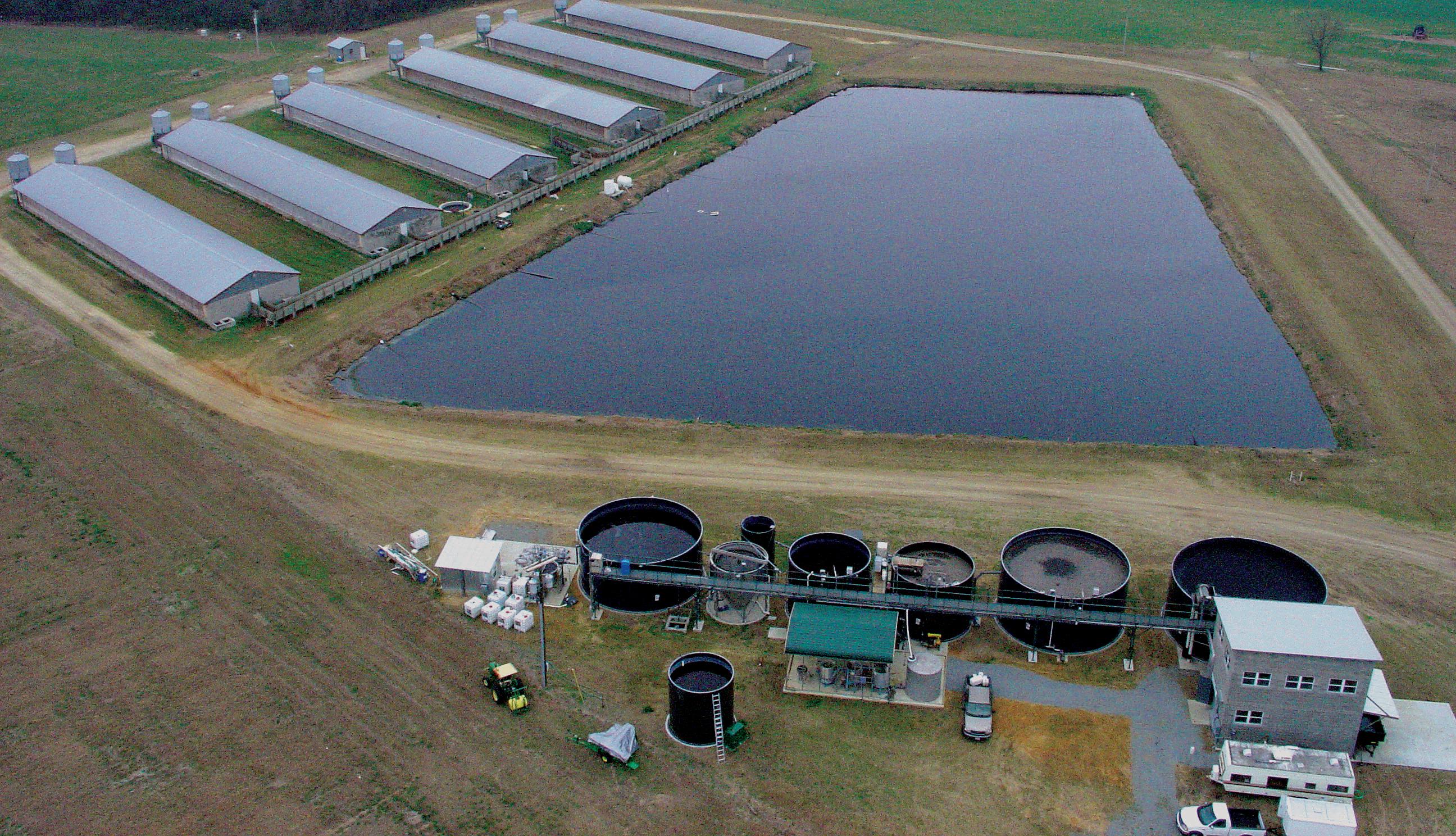 The Julian Barham Farm in Zebulon, North Carolina, has created two new income streams from its liquid manure. Firstly, it has installed an ambienttemperature anaerobic digester to capture biogas from the manure to generate electricity. Secondly, some of the stabilized liquid manure discharged from