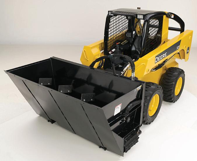 All side discharge buckets are compatible with standard-flow Deere machines.