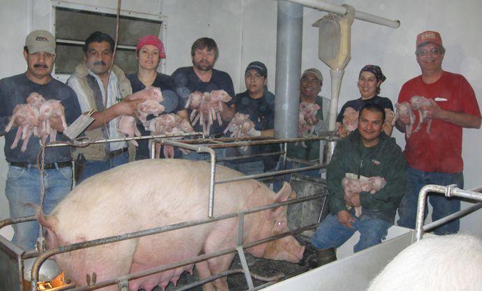 Oaks Farm is in the pigs. The operation recently had a sow give birth to 26 live piglets.