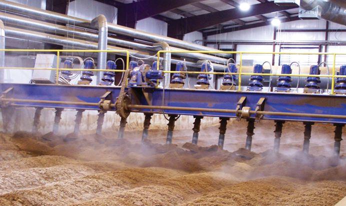 It takes the material about 12 to 18 hours to pass through the drum, where micro-organisms act on the material. The temperature inside the drum rises to about 150 F, hot enough to kill pathogens that cause mastitis and other costly diseases.