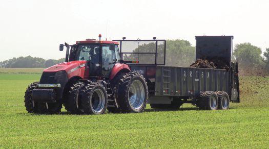 Solid manure is applied in a Minnesota field. Image courtesy of Melisa Wilson.