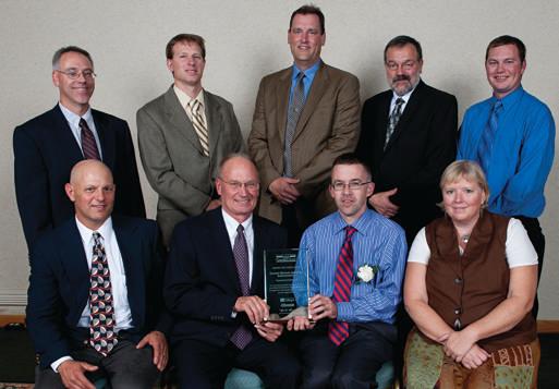 The Custom manure Applicator Subcommittee, Agriculture and Natural Resources, Cooperative Extension, University of Wisconsin-Extension, is a recipient of a University of Wisconsin Colleges and University of Wisconsin-Extension 2010 Chancellor’s Award for Excellence for protecting valuable water resources by providing innovative and effective manure management training throughout Wisconsin and the upper Midwest. (Back row, left to right) Jerry Clark, Nick Schneider, Matt Hanson, Ted Bay, Joe Bollman. (Front row, left to right) Jim Leverich, Interim Chancellor Marv Van Kekerix, Kevin Erb, Cheryl Skjolaas.