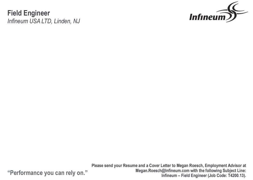 The position is for a Large Engine Field Engineer in Infineum’s global Marine and Large Engine technical team, located in North America, with main responsibilities covering gas engines in the Americas. The position will include identification and securing suitable engines for Gas Engine Oil (GEO) product field testing, running and rating of GEO product performance trials, customer technical field support for operators of gas engines using GEO produced from Infineum additives, and interfacing with Large Engine Lubricant (LEL) Deployment & Development (D&D), the field Performance Group (San Antonio) and with Infineum Sales and Marketing.
