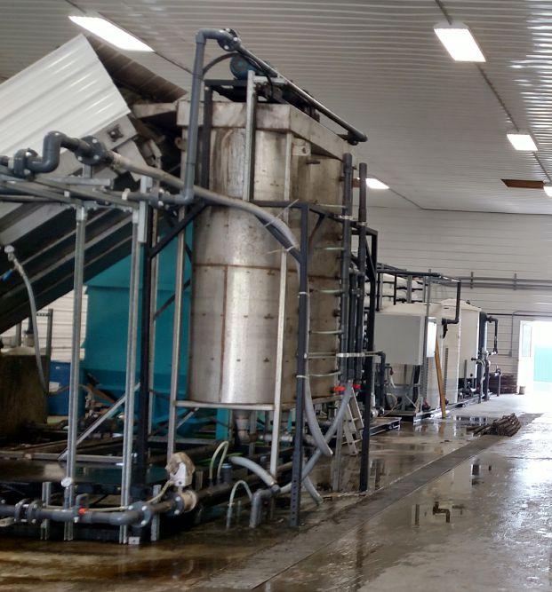 “This farm produces 25 million gallons of manure a year [that includes 200+ inches of precipitation a year] and the CAFO regulations are strict,” says Nate Hartway, the farm’s financial and environmental compliance manager. “We were looking at systems that could produce clean water from manure, and in the summer of 2014 we traveled to a Michigan farm to see a system in operation.”