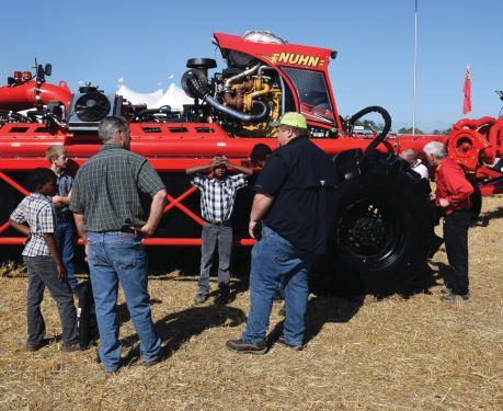 Attendees view solid and liquid spreading demos, and inspect the patterns. Visotirs view equipment, robot milking technology and an agitation demo.