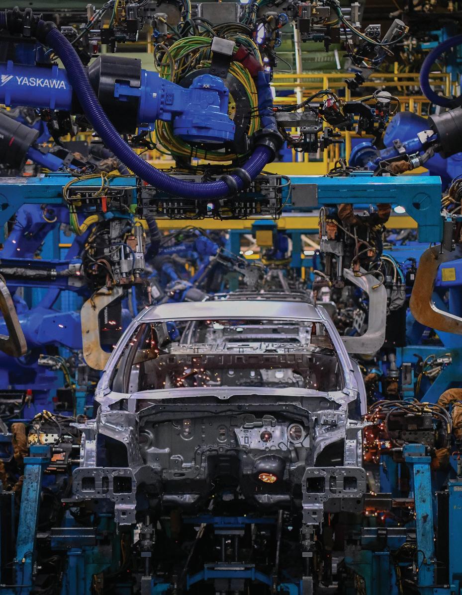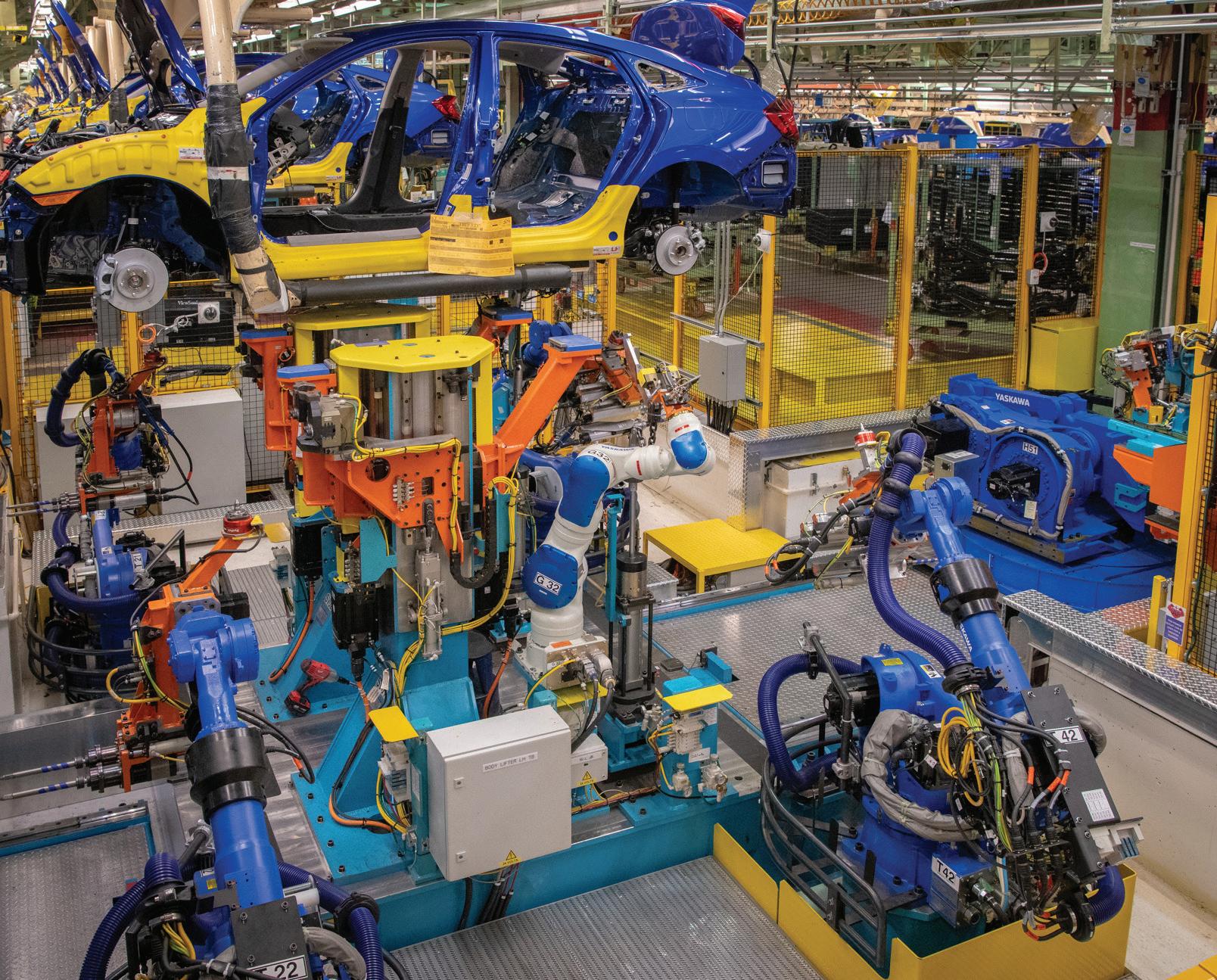Mike Riddall : Nos installations comptent plus de 1100 robots, dont la plus grande concentration se trouve dans nos services de soudage, avec environ 800 unités. Les robots utilisés ont une capacité de charge utile allant de 4 à 900 kilogrammes. Ils sont utilisés pour une combinaison de tâches, dont la manutention, le soudage, la peinture, la distribution d’adhésif, l’inspection, le meulage et la fixation. Ils sont conçus par plusieurs fabricants, notamment ABB, Fanuc et Yaskawa.
