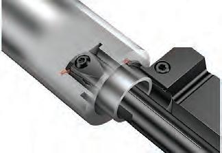 CoroCut QI is divided into internal grooving and face grooving application areas, and is an upgrade of the T-max Q-Cut 151.3 program. The design allows for greater chip control, a 10 per cent productivity increase, and a 20 per cent improved tool life aided by tighter edge-rounding tolerances and internal coolant for both internal and face grooving tools.