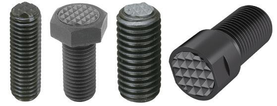 carbide-tipped threaded body type. Each of the variety of threaded adjustable grippers allows the user to adjust the height of the gripper and are ideal for workholding applications where limited access space, or limited fixture travel makes loading, unloading and secure holding difficult. Fairlane Products grippers provide quick changeover and replacement when application requires flexibility. The round head allows for additional clearance and has wrench flats for easy adjustments. The internal hex on the round head and threaded body style allows for adjustment from the backside. The serrated carbide tip in each provides positive holding and wear resistance. These carbide pads are brazed into a pocket on the gripper head.
