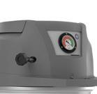 The tool-less conversion to vacuuming liquids is done by releasing one latch, removing the filter element and securing the latch. Simply reinstall the filter into the lid assembly for dry materials. It rests upon any 55 gallon drum and uses a standard or HEPA -certified filter when vacuuming dry material.