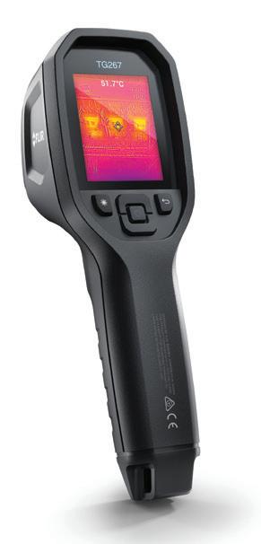 measurement with a Type K thermocouple probe for temperature readings. It is built around a 160 by 120 FLIR Lepton thermal sensor. TG267 features a multipoint laser pointer and bright LED flashlight. Bluetooth Low Energy technology allows image and data upload to a mobile device. TG267 stores up to 50,000 images seen on the 2.4-inch colour display.