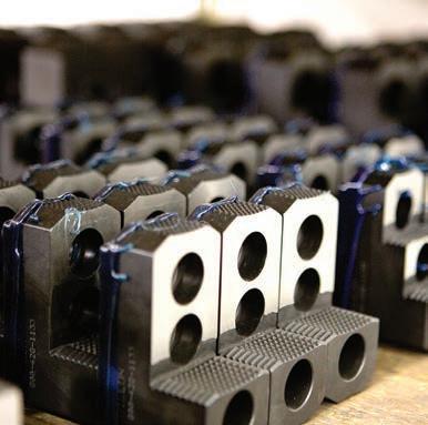 Reversible hard jaws from Dillon Manufacturing, Inc., which are suitable for ID and OD workholding, are manufactured of 8620 steel, case hardened, with ground locating surfaces, and black oxide coated for corrosion resistance. The jaws are available in serrated, Acme Key, square key, and tongue-and-groove styles to fit all brands of chucks.