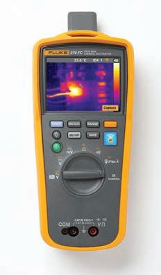 Fluke’s 279 FC TRMS Thermal Multimeter is the first test tool to integrate a full-featured true RMS (TRMS) digital multimeter (DMM) with a thermal camera in one device to speed troubleshooting. The 279 FC allows technicians to quickly and safely check for hot spots in fuses, wires, insulators, connectors, splices and switches with the imager and then troubleshoot and analyze issues with the DMM. www.fluke.com