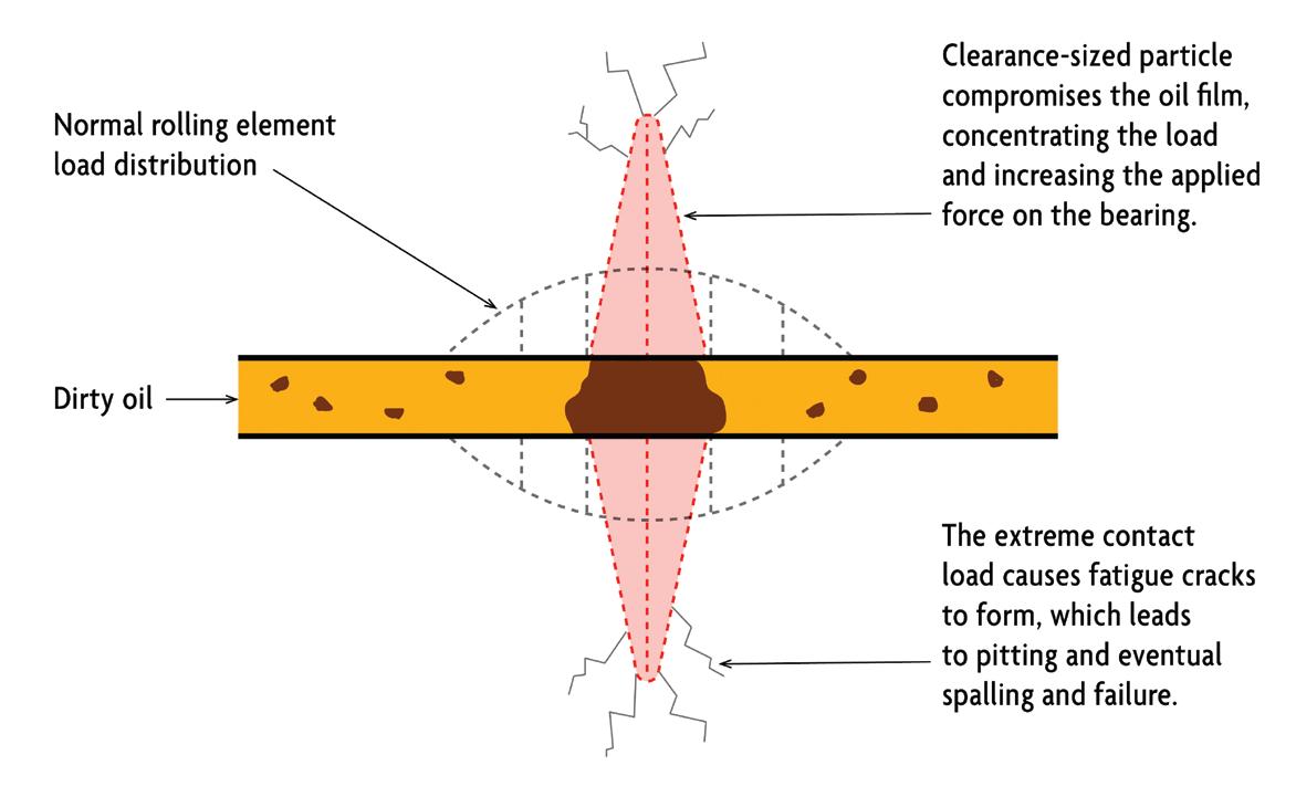 Figure 1: Small (five to 10 micron) particles concentrated load in critical clearances, which leads to fatigue, wear, and abrasion.