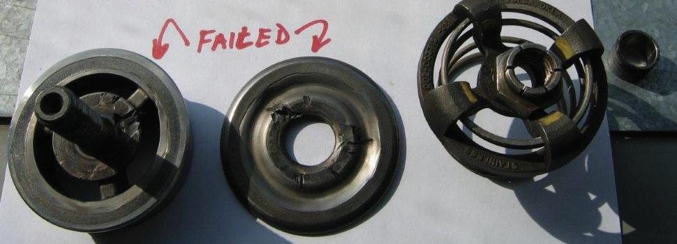 Figure 2: Failed pump valve from one of the mid-size tri-plex pumps. Wire drawn leak paths.