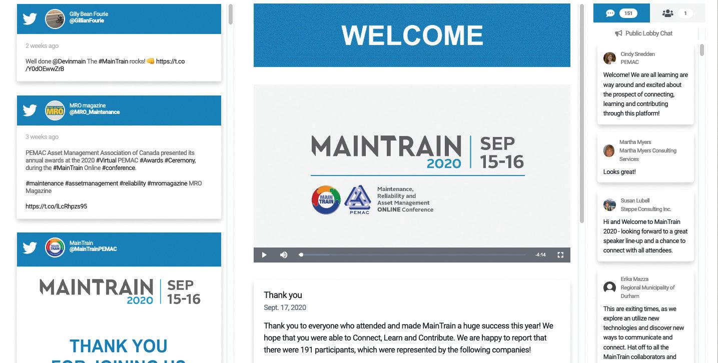 This time last year, in MRO Magazine’s November issue we covered a large cross-section of live in-person events. They included: the 2019 PEMAC MainTrain Conference, which was held in Edmonton, Alberta, and included an MRO Roundtable; the 2019 Canadian Manufacturing Technology Show (CMTS), which is held bi-yearly, and alternates with the International Manufacturing Technology Show (IMTS); Excellence in Manufacturing Consortium held its Advantage Through Excellence conference; and The Canadian Wind Energy Association (CanWEA) held its 35th Annual Conference and Exhibition.