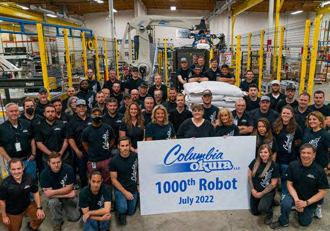 Columbia Okura celebrates shipping its 1000th robotic palletizer.