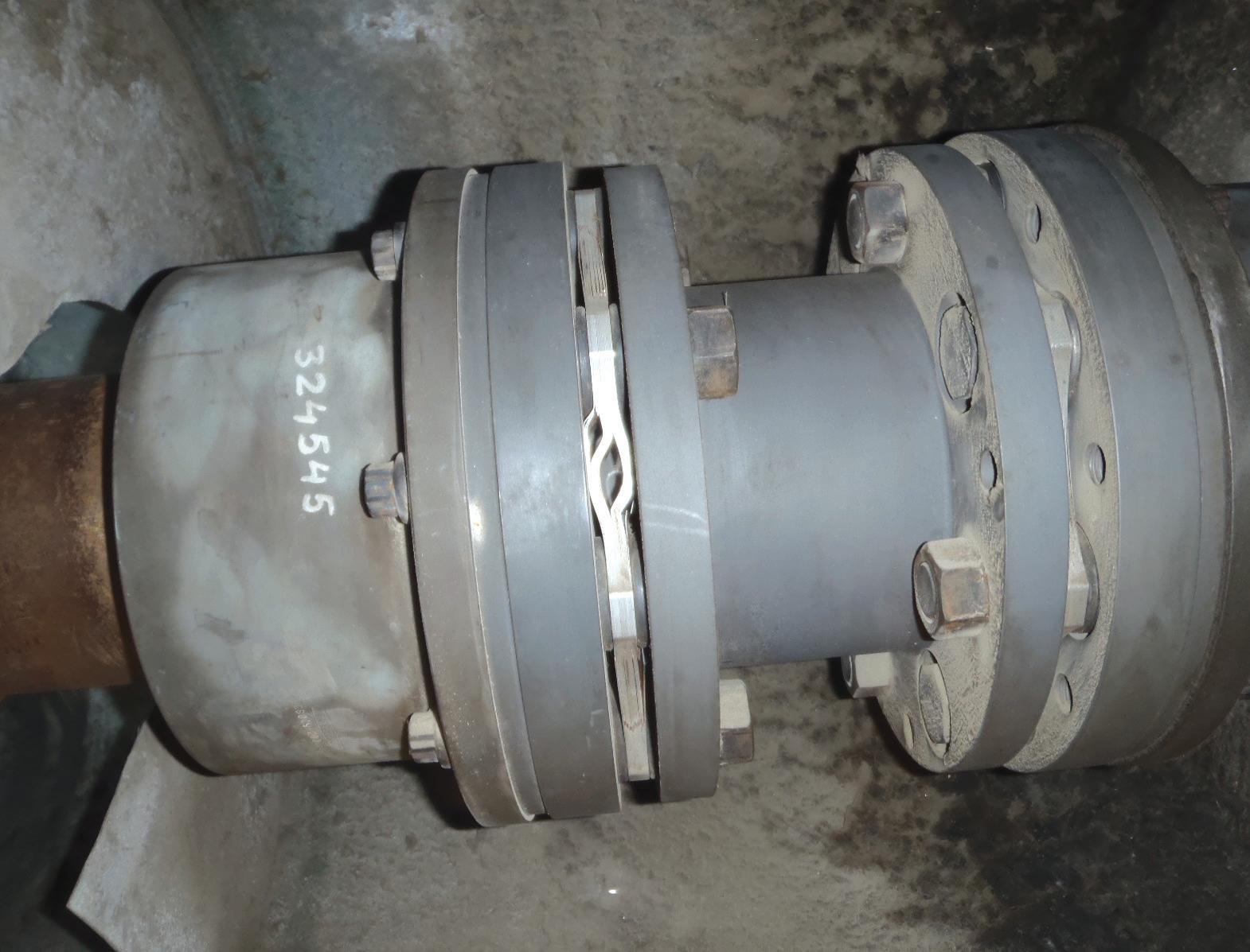 plant, the vibration on the primary reformer ID fan increased from 5.5 mm/sec to 6.7 mm/sec. Although this rise did not reach the online alarm threshold, the change in vibration levels warranted an investigation to determine the cause. In conjunction with vibration analysis, photographs were safely taken while the fan was operational, allowing us to identify the damaged coupling swiftly. A controlled plant shutdown was planned a nd executed to conduct maintenance before a catastrophic failure of the coupling could occur. The root cause analysis (RCA) concluded that a change in alignment due to motor movement was responsible for the issue.