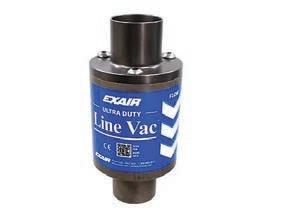 alloy and ceramic insert, the unit offers enhanced wear resistance for applications involving sand, glass, powders and other abrasive media. It uses compressed air to generate a vacuum with throughput up to 50 per cent higher than standard Line Vac models, enabling long vertical and horizontal conveying runs.