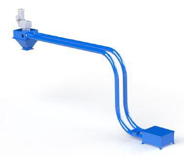 Axis Conveyor is a company specializing in custom design and manufacturing of conveyors. Its main product line is the Drag Chain conveyor. The Drag Chain conveyor moves bulk material inside a piping system with discs that are mounted on a moving chain. The inlet and outlet of the conveyor being flanged allows for a completely sealed and dust-free system. The material conveys at low speed keeping the integrity of the product. The conveyor can move material from 1 to 1,200 cubic