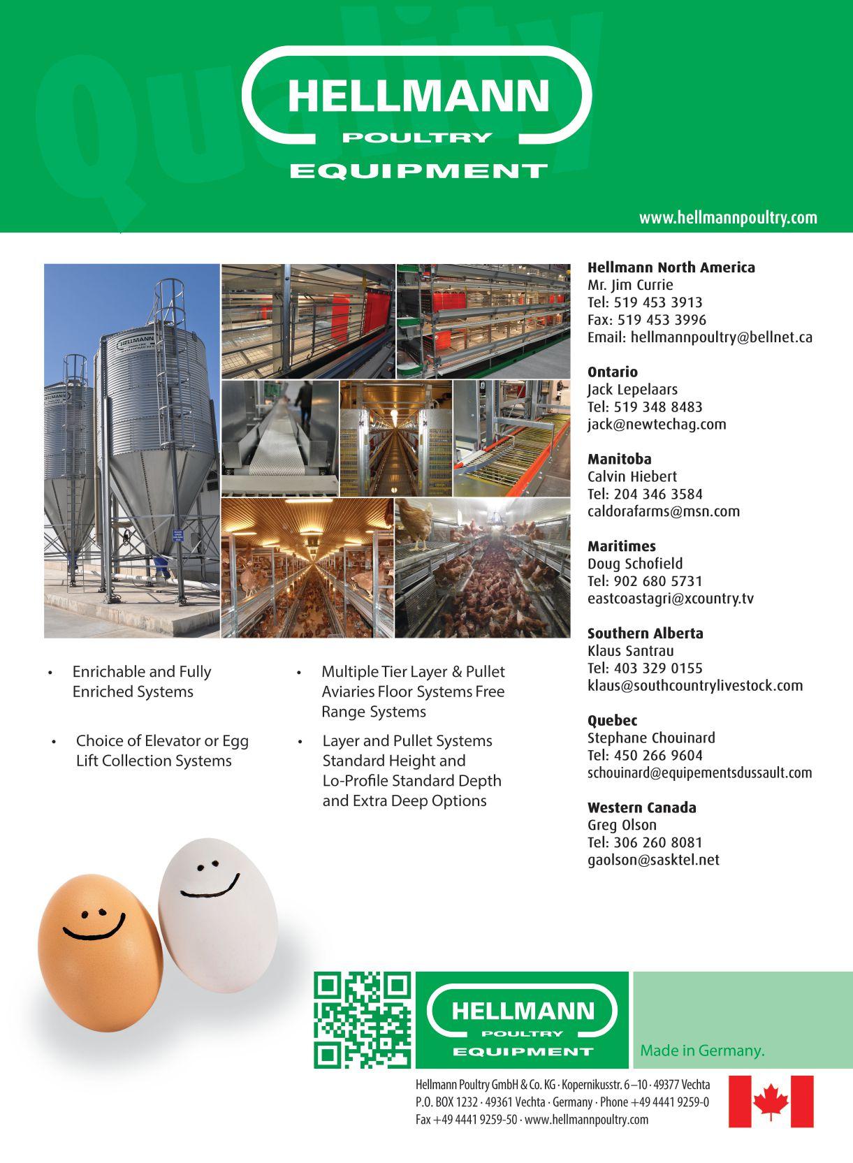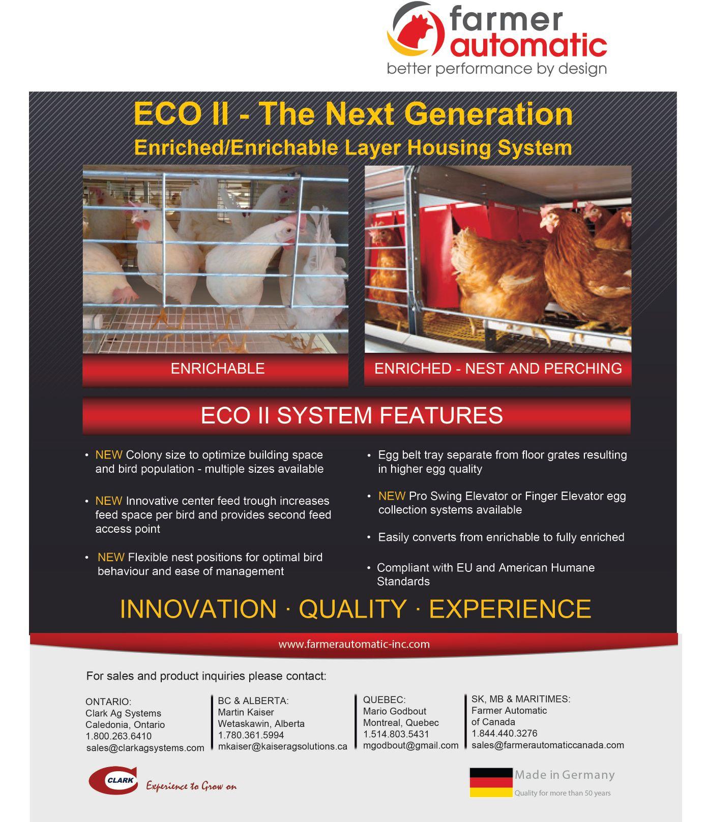 section de cage abrite un maximum de 24 poules. « la recherche démontre que dès qu’il y a plus de 30 ou 40 poules dans une cage, les dominantes s’en prennent aux dominées, qui perdent leurs plumes », explique Johann Benner, le responsable du marché canadien chez le fabricant allemand.