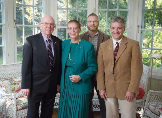 James and brenda mcIntosh (right), shown here with andy robinson, chair of the Department of animal and Poultry science; and robert Gordon, dean of the ontario agricultural college last year.