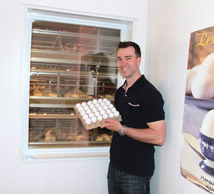 mathieu Poirier a fait installer une fenêtre, pour que les visiteurs puissent voir les poules et leurs conditions d’élevage.