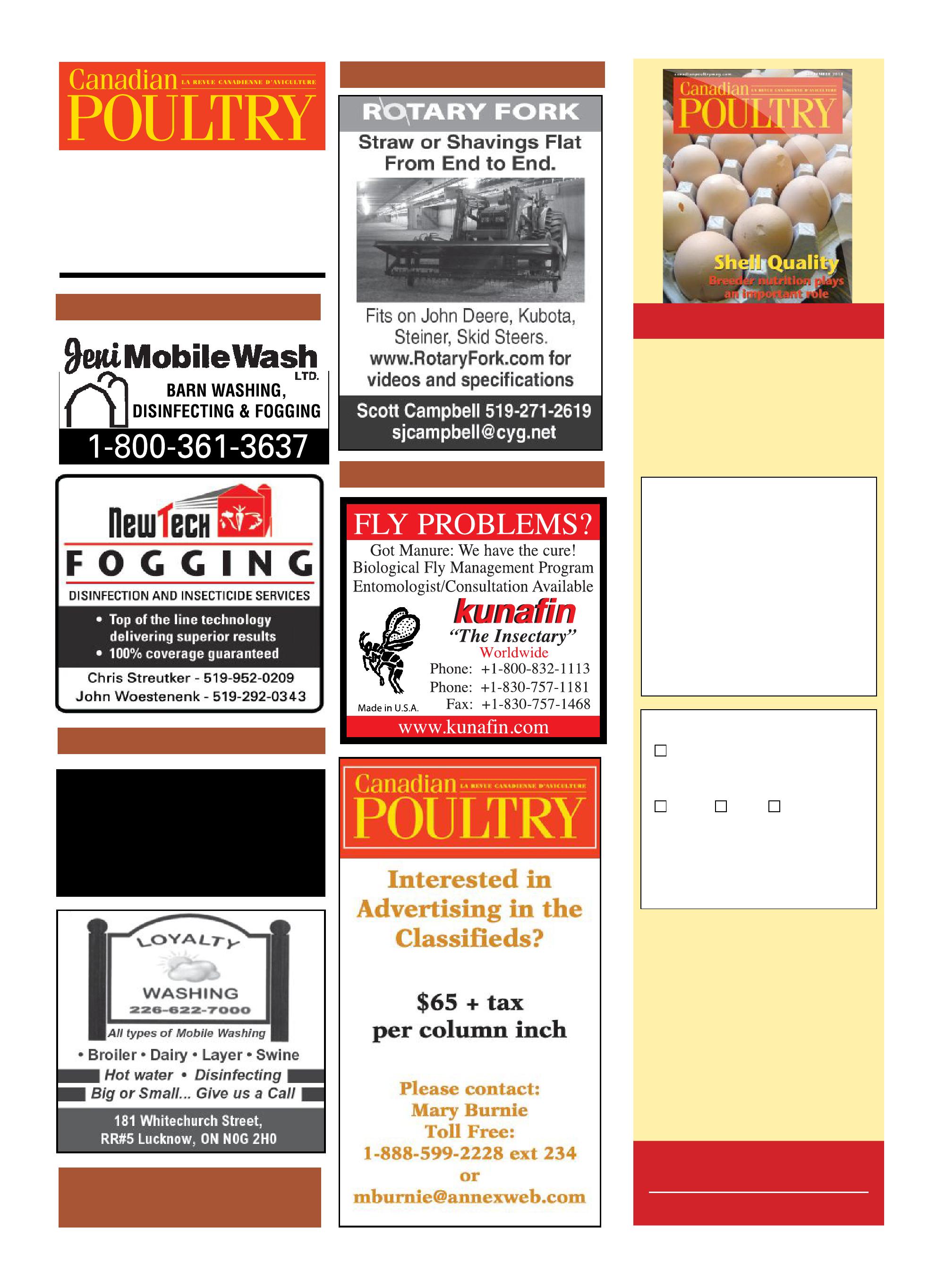 We welcome additions to our Coming Events section. To ensure publication at least one month prior to the event, please send your event information at least eight to 12 weeks in advance to: Canadian Poultry, Annex Business Media, P.O. Box 530, 105 Donly Dr. S., Simcoe, ON N3Y 4N5; email knudds@annexweb.com; or fax 519-429-3094. Please write ‘Event Submission’ in the subject line.