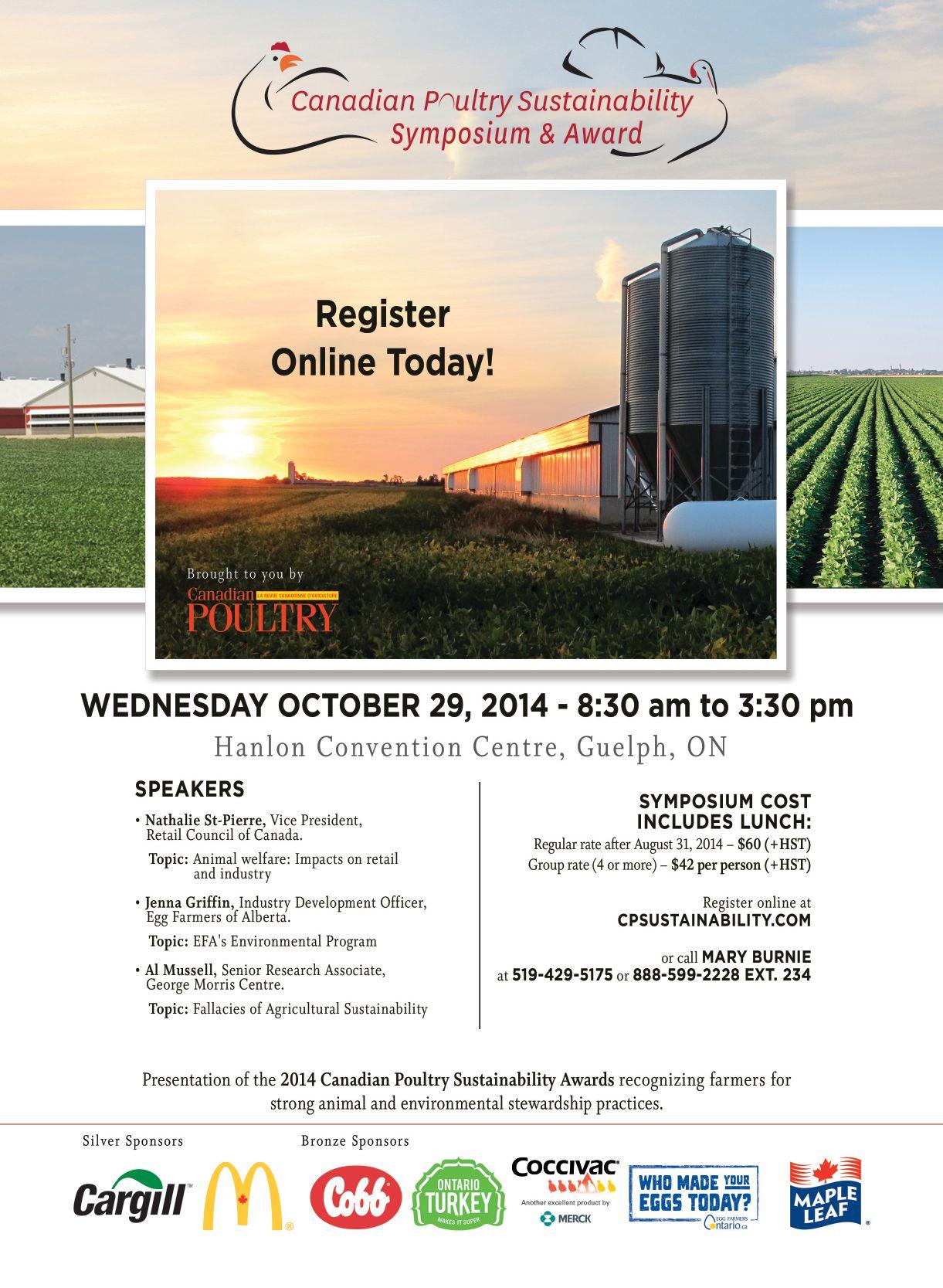 october 29, 2014 canadian Poultry sustainability award and symposium hanlon convention centre, guelph, ont. www.cPsustainability.com