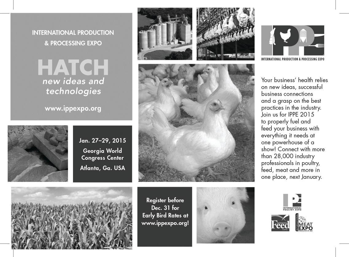 January 27-29, 2015 International Production and Processing expo (IPPe) World congress center, atlanta, georgia. For more information, visit: www.ippexpo.com