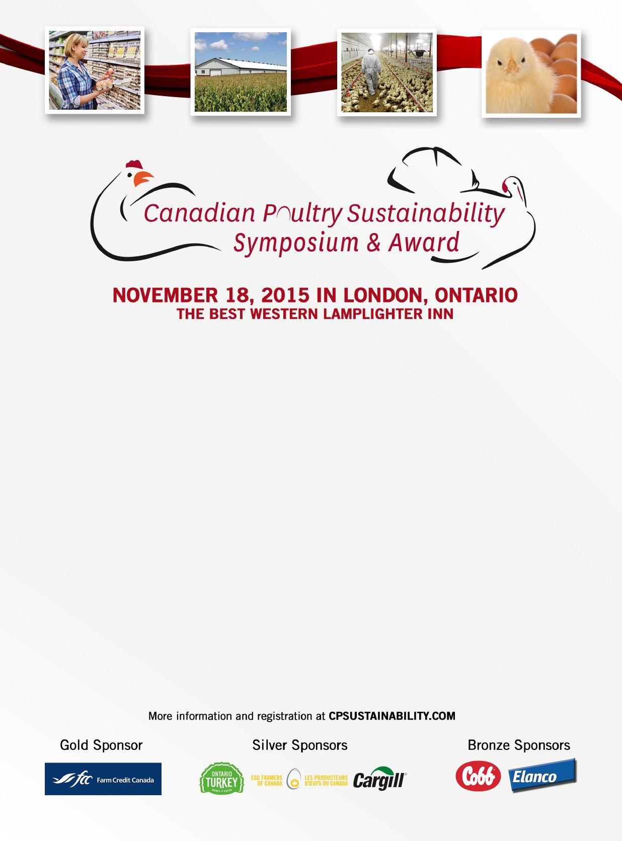 Canadian Poultry Sustainability Symposium, Best Western Plus Lamplighter Inn and Conference Centre, London, Ont. For more information, visit: www. cpsustainability.com