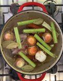 Put everything but the vinegar in a large stockpot. Bring the stock to a boil over high heat, then turn down to a simmer. Skim off any foam that rises to the surface. Add the vinegar. (It helps draw out nutrients and minerals from the bones into the stock).