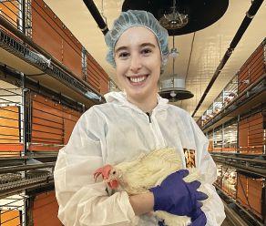 She notes that feather pecking is a longterm poultry welfare problem, one that’s part of fear response. Harlander is currently doing ground-breaking experiments to examine how changes in gut microbiome affect feather pecking behaviour.