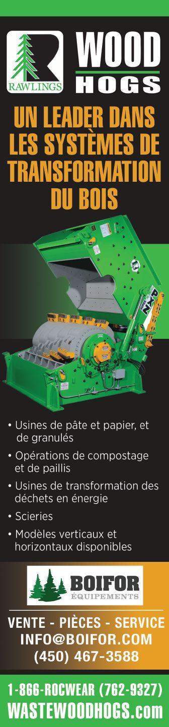 Toute copie additionnelle: 5.50 $ pour le Canada et 6.00 $ pour les autres pays. Opérations Forestiéres et de Scierie est publiée par Annex Business Media. PUBLICITÉ: National Josée Crevier Tel: 514.425.0025 ext 21 Cell:
