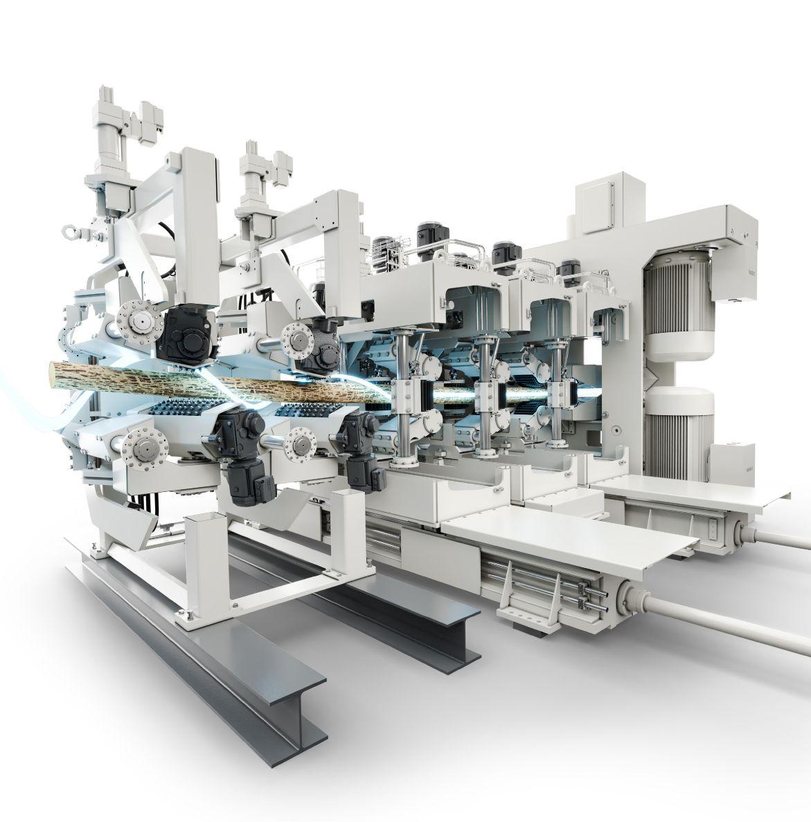 novatrices destinées à la production de bois d’œuvre. Parmi ses produits novateurs, on trouve des tourne-billes et des systèmes d’alimentation de billes optimisés, des équarrisseuses et des modules de scies circulaires multiples (Twin et Quad), ainsi que des débiteuses d’équarris optimisées permettant le sciage courbe contrôlée, pour ne nommer que ceux-ci.