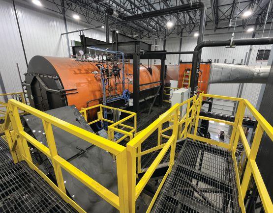 gaz à effet de serre (GES). Ce processus de reconversion innovant possède un rendement très élevé et produit très peu d’émissions, car les gaz sont brûlés dans la zone de combustion contrôlée.