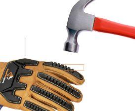 The most common impactrelated hand injuries occur to the back of the hand. Since impact-resistant material is stiffer than typical glove material, impact protection is typically placed only on the back of the hand. This helps keep hands safer without making it harder for workers to complete everyday tasks.