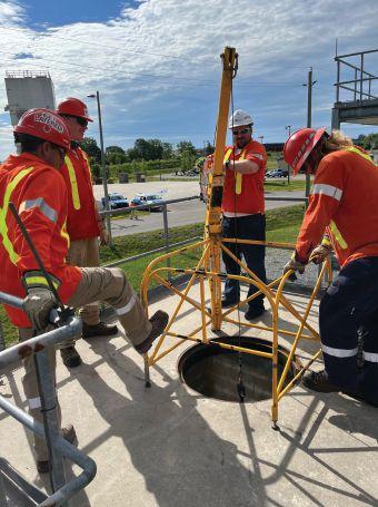 Infrastructure Coatings (Ontario) Corporation was contracted by a constructor under contract to the Regional Municipality of York to re-line an underground water chamber with a spray waterproofing as part of a watermain remediation project.