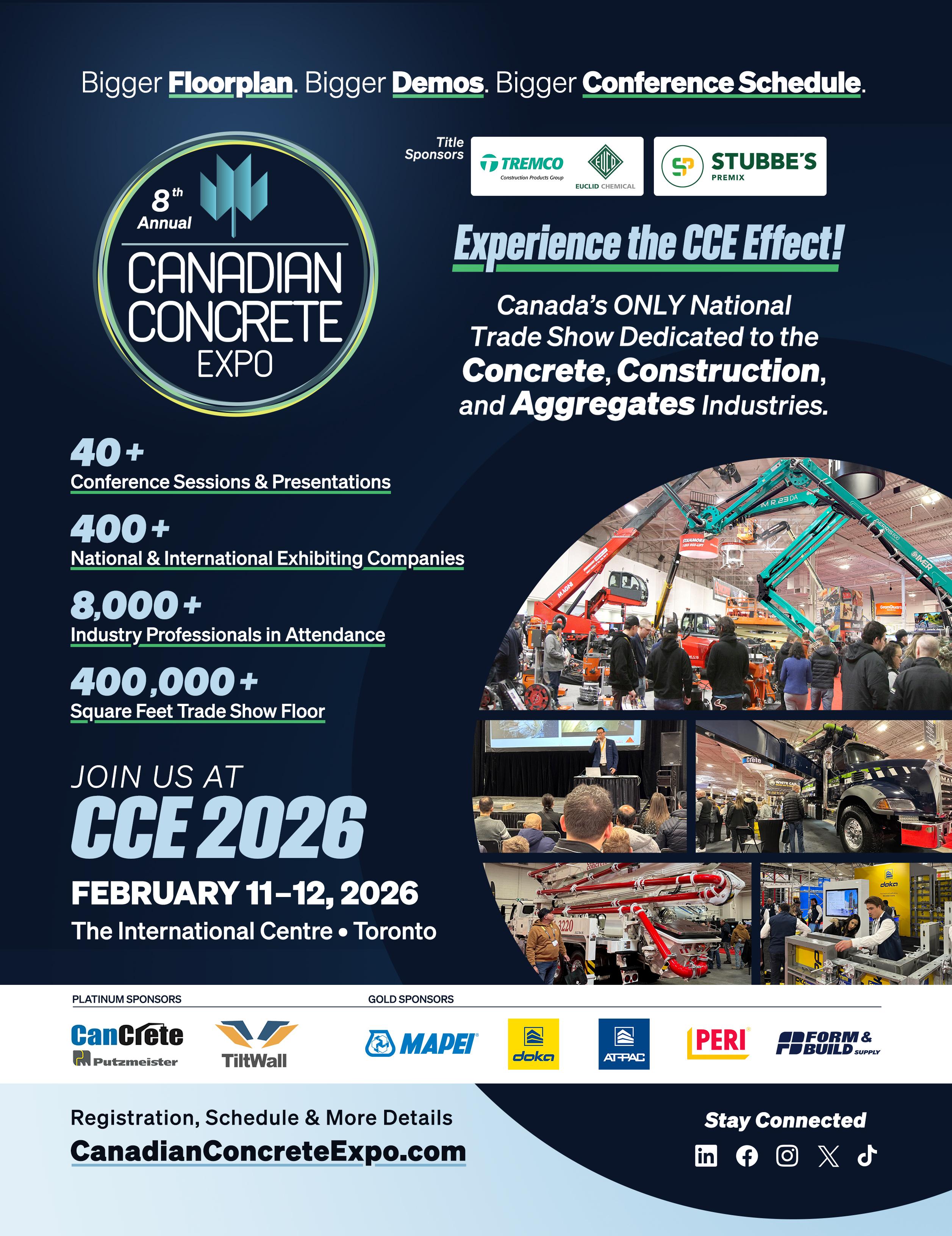 The 2026 Canadian Concrete Expo promises to be the show’s biggest and most dynamic edition yet - a true showcase of where Canada’s concrete and construction sectors are heading.