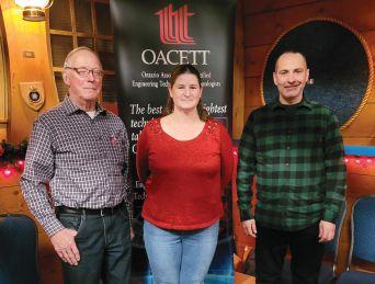OACETT Near North Chapter milestone recipients at holiday dinner, from left to right: Leslie Collins, C.E.T., Dawn Weber, C.Tech., and Jason Hack, C.E.T.