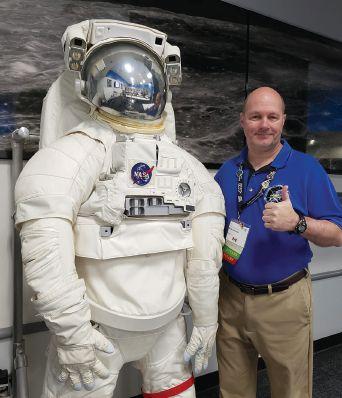 An astronaut (left) and Brian Ewenson, aerospace educator, consultant and professional speaker (right) with Cornwall Chapter executive members, sharing his experience and knowledge.