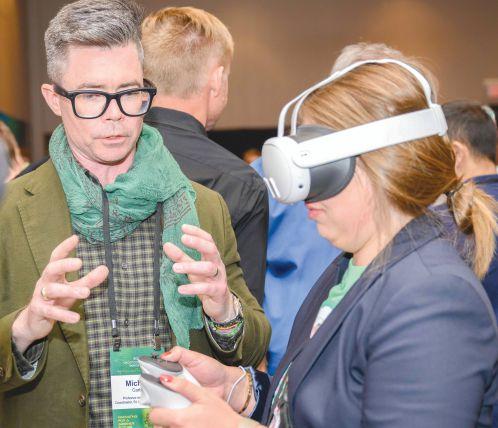 Sean Morrison, professor and coordinator at Mohawk College’s Avionics Mount Hope Campus, demonstrated the Virtual Maintenance Trainer for starting a Boeing 737NG jet engine. Mohawk’s lab, equipped with ten stations, stands out from facilities typically having one or two.